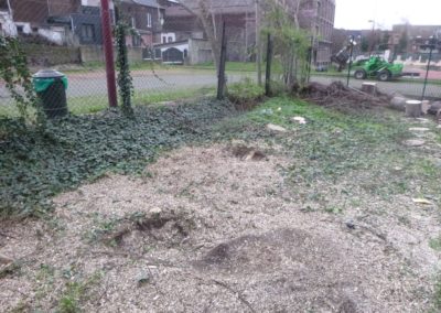Abattage de pin scolytés et enlèvement des souches en vue d’une nouvelle plantation prochaine.