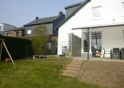 Réalisation d’une plantation de graminées, placement d’un petit écran en composite, pose de clôtures rigide, rectification des niveaux de la pelouse qui a été attaquée pour des taupes et nettoyage et taille. Un jardin prêt pour le retour des beaux jours.