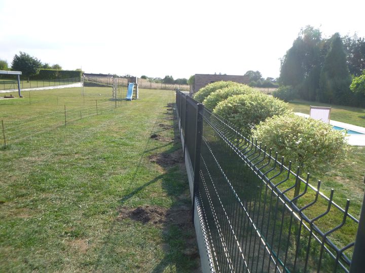 Clôture rigide BETAFENCE 3 D avec une plaque de soubassement pour une belle effet et un entretien simplifier.