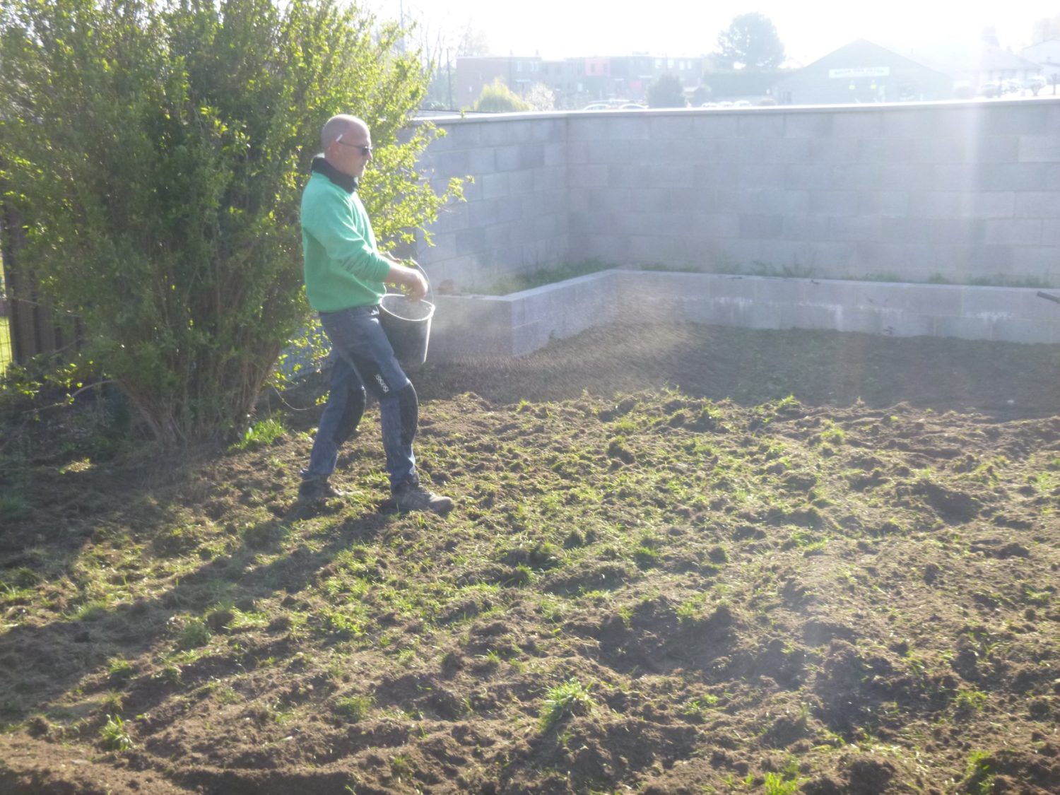 Placement de rouleaux de gazon pour ne pas devoir attendre des semaines pour pouvoir lâcher les chiens.